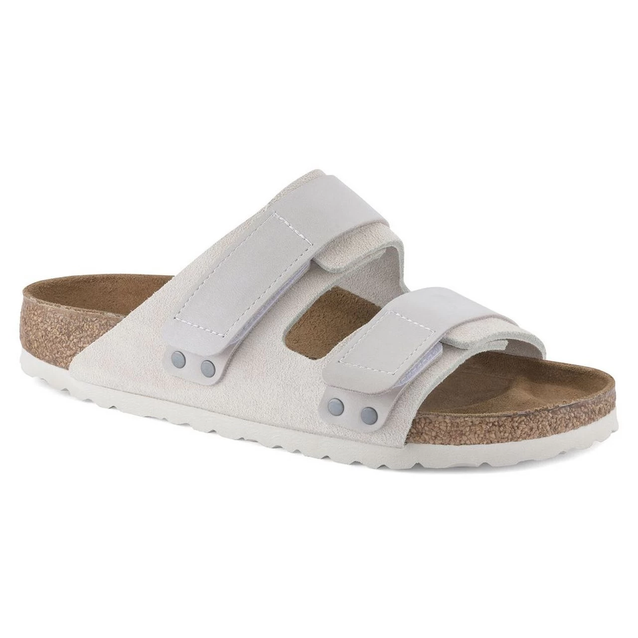 A sport-inspired take on the iconic Arizona sandal, the Uji maximizes on-the-go comfort. A suede upper comes together softly over the foot, secured by nubuck hook-and-loop straps for a customized fit. The style is grounded in signature BIRKENSTOCK support, with a cork-latex footbed that shapes to you with wear.Â